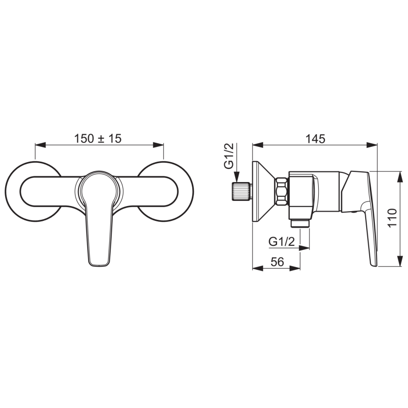 Dušo maišytuvas, Chromuotas, Maks. vandens srautas - 16.2l/min, Chromuota svirtelė skirta reguliuoti temperatūrą ir srovės stiprumą, Integruotos vandens srauto ir temperatūros ribojimo galimybės, Dušo žarnos pajungimas iš apačios G1/2