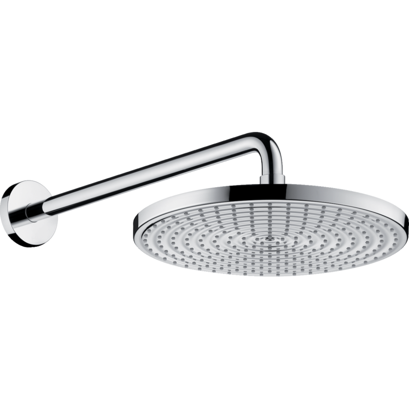 Potinkinė dušo galva su dušo alkūne, Chromuota, 300 mm skersmens, 460 mm dušo alkūnė, 1 srovės ("RainAir"), Maksimalus vandens srovės srautas - 18 l/min., QuickClean technologija, 5 metų garantija