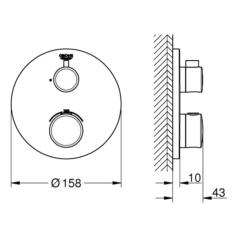 Potinkinis dušo maišytuvas Grohe Grohtherm, chromo spalvos, be potinkinės dalies. Potinkinio maišytuvo Grohe Grohtherm "StarLight" apdaila padeda lengvai jį prižiūrėti, todėl nereikia didelių pastangų jį valant. SafeStop funkcija vonios maišytuve Grohe Grohtherm leidžia nustatyti maksimalią 38 °C vandens temperatūrą, o TurboStat technologija padės palaikyti tą pačią temperatūrą, todėl maudymasis vonioje taps dar malonesnis ir komfortiškesnis. Integruota viena metalinė valdymo svirtis vandens srovės srauto ir temperatūros reguliavimui. Tinka montavimui su Grohe 35600/35604 potinkine dalimi. Suteikiama 5 metų garantija.
