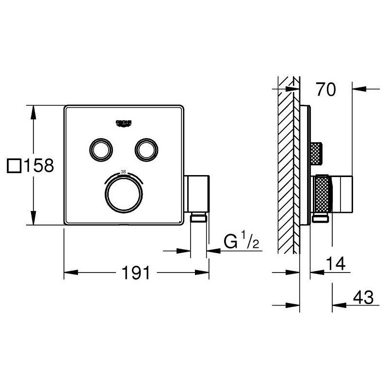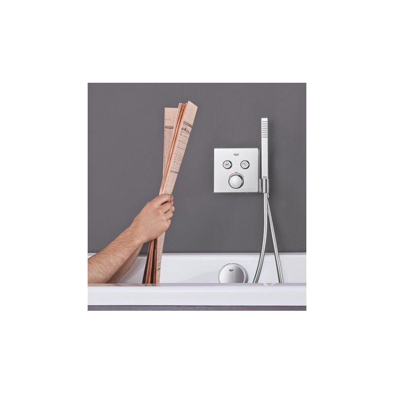 Potinkinis dušo maišytuvas Grohe SmartControl su dušo laikikliu, chromo spalvos, be potinkinės dalies. Potinkinio maišytuvo Grohe SmartControl "StarLight" apdaila padeda lengvai jį prižiūrėti, todėl nereikia didelių pastangų jį valant. Paprastas ir greitas montavimas (FastFixation technologija). SmartControl dušo valdymo sistemos dėka galite lengvai nustatyti vandens srovės stiprumą ir temperatūrą, pasirinkti norimą srovės režimą ir greitai nukreipti ją į viršutinį dušą, rankinį dušą arba vonios pripildymo snapą. SafeStop funkcija leis nustatyti maksimalią 38°C vandens temperatūrą. Potinkiniame dušo maišytuve Grohe SmartControl integruotas atbulinis vožtuvas, kuris apsaugo nuo atgalinio vandens srauto. Tinka montavimui su Grohe 35600/35604 potinkine dalimi. Suteikiama 5 metų garantija.