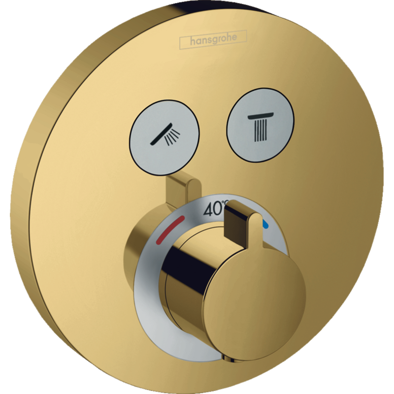 Dekoratyvinė dalis termostatiniam potinkiniam dušo maišytuvui Hansgrohe Shower Select S, 2 funkcijų, poliruoto aukso spalvos. Dušo dekoratyvinės dalies Hansgrohe Shower Select S apdaila padeda lengvai jį prižiūrėti, todėl nereikia didelių pastangų jį valant. Dekoratyvinė dalis tinka su daugeliu potinkinių maišytuvų (perkamas atskirai). 2 funkcijų dekoratyvinė dalis Hansgrohe Shower Select S leidžia mėgautis vandens srove iš dviejų išėjimų vienu metu arba atskirai (pvz: rankinio dušo ir lietaus dušo galvos). Mygtuko paspaudimu galima reguliuoti iš kur paduoti vandens srovę, ar ją visai sustabdyti. Suteikiama 5 metų garantija.