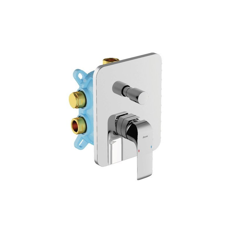 Maišytuvas su įmontuotu jungikliu suteikia galimybę paskirstyti vandenį bet kuriose dviejose vietose – vonia/dušas arba rankinis/viršutinis dušas. Galėsite jį valdyti ir šlapia ranka, dėl jo praktiškos formos, o fiksuojantis mechanizmas užtikrins, jog perjungiklis neišsijungtų net ir sumažėjus slėgiui. Potinkinis vonios ir dušo maišytuvas Ravak Flat FL 065.00, tinka vonioms (užpildymas perpylimu ir išvadas rankiniam dušui) arba dušo kabinoms, turinčioms fiksuotą ir rankinį dušą.