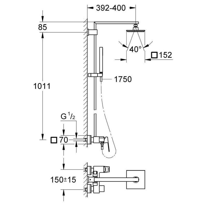 Dušo komplektas Grohe Eurocube System 150 su termostatiniu maišytuvu. SpeedClean technologija su StarLight chromo apdaila, padės palaikyti švarą bei nesikaups kalkių nuosėdos, todėl dušo komplekto Grohe Eurocube System 150 priežiūra taps itin lengva. Komplektą sudaro stacionari Grohe Euphoria Cube dušo galva, Grohe Euphoria Cube Stick rankinis dušas, termostatinis dušo maišytuvas.