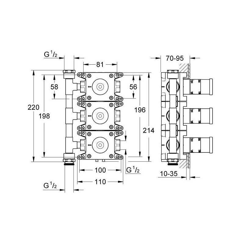 Potinkinė dalis Grohe Rapido C, ventilių perjungimui