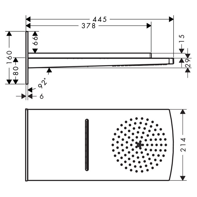 Potinkinė dušo galva Hansgrohe Raindance Rainfall 180. Potinkinė dušo galva su 2 srovės tipais ("RainAir", "RainFlow"), leis mėgautis dušo teikiamu komfortu. Maks. vandens srovės srautas su "RainAir" - 17l/min, "RainFlow" - 24l/min. Potinkinė dušo galva Hansgrohe Raindance Rainfall yra 180x214mm dydžio, o tai leis mėgautis plačia vandens srove, o maudymasis duše taps itin malonus. QuickClean technologija padės lengvai prižiūrėti dušo galvą, nes ant jos nesikaupia purvas ir kalkių nuosėdos. Suteikiama 5 metų garantija.