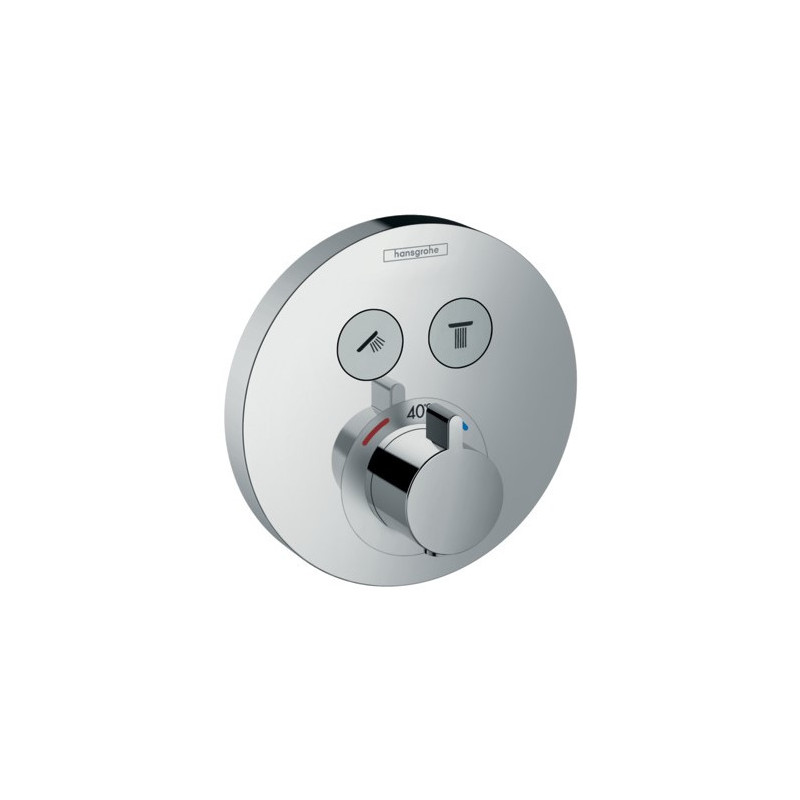 Dekoratyvinė dalis termostatiniam potinkiniam dušo maišytuvui Hansgrohe Shower Select S, 2 funkcijų. Dušo dekoratyvinės dalies Hansgrohe Shower Select S chromo apdaila padeda lengvai jį prižiūrėti, todėl nereikia didelių pastangų jį valant. Dekoratyvinė dalis tinka su daugeliu potinkinių maišytuvų (perkamas atskirai). 2 funkcijų dekoratyvinė dalis Hansgrohe Shower Select S leidžia mėgautis vandens srove iš dviejų išėjimų vienu metu arba atskirai (pvz: rankinio dušo ir lietaus dušo galvos). Mygtuko paspaudimu galima reguliuoti iš kur paduoti vandens srovę, ar ją visai sustabdyti. Suteikiama 5 metų garantija.