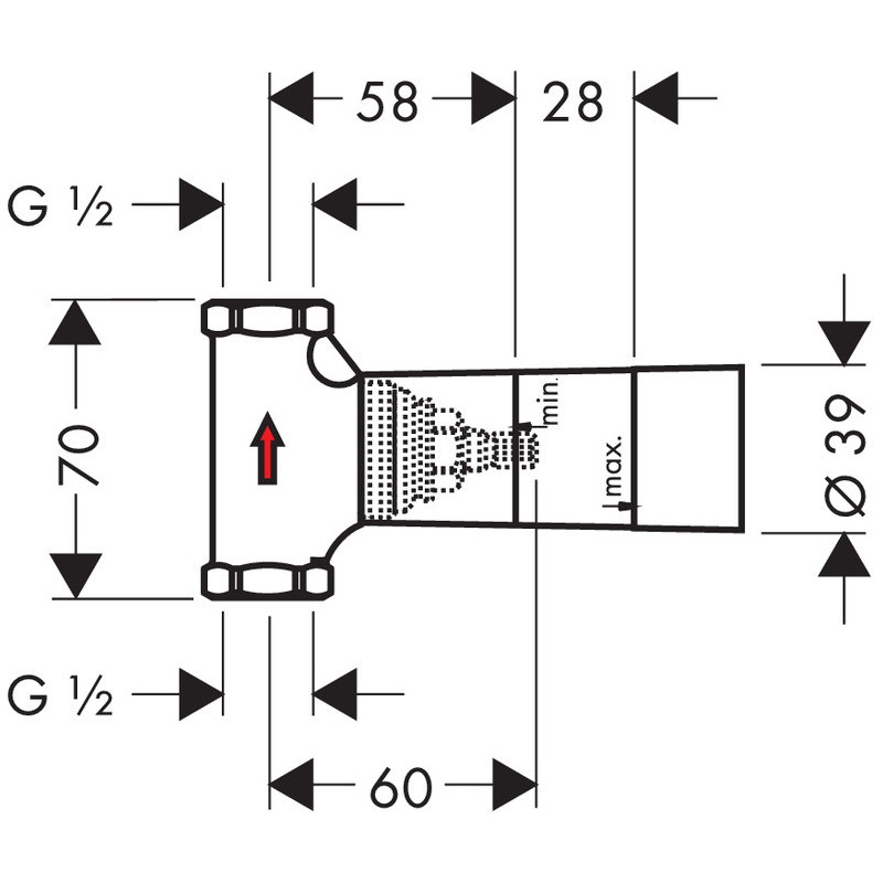 Potinkinis uždaromasis ventilis, Tinka su visomis dekoratyvinėmis dalimis su uždaromuoju ventiliu, Maks. srautas - 40l/min