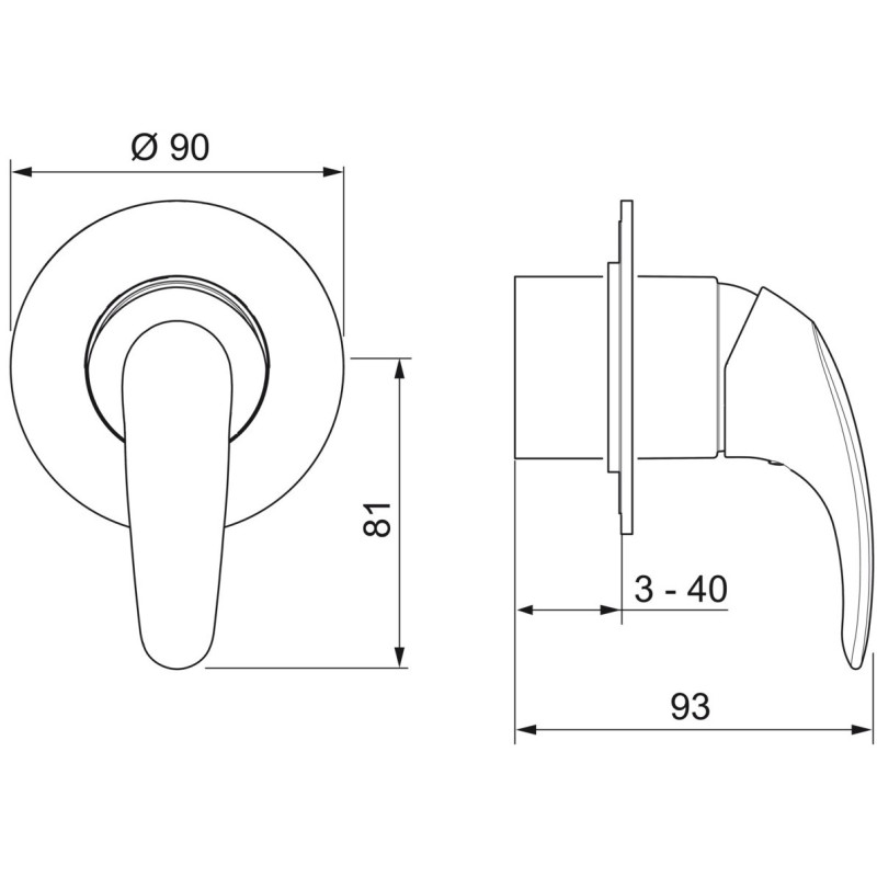 Dušo maišytuvo dekoratyvinė dalis, Chromuota, Maks. vandens temperatūra +80°C, Svirtelė skirta reguliuoti vandens temperatūrą ir srovės stiprumą, Naudojama su dušo maišytuvo korpusu Oras 1486