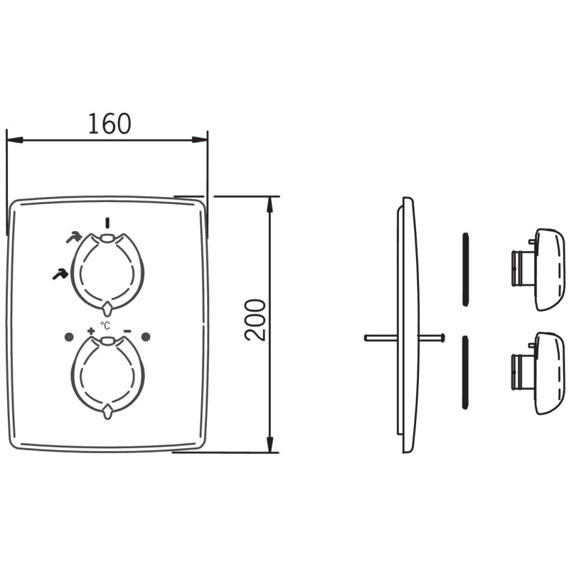 Termostatinio vonios/dušo maišytuvo dekoratyvinė dalis, Chromuota, Maks. vandens temperatūra +80°C, Dvi patogios rankenėlės maišytuvo valdymui, Naudojama su vonios/dušo maišytuvo korpusu Oras 7128/7138