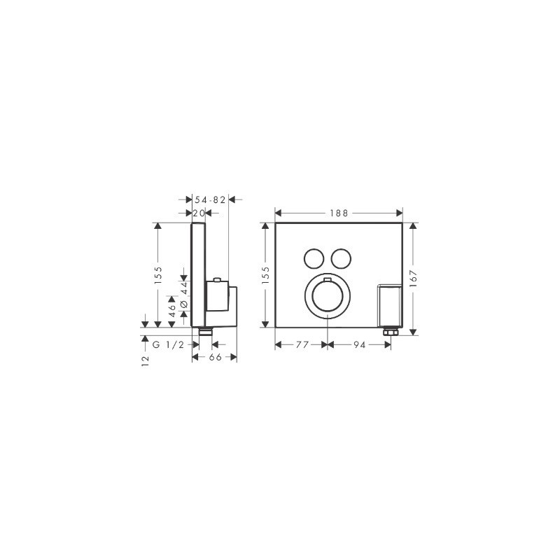 Dekoratyvinė dalis potinkiniam termostatiniam maišytuvui Hansgrohe AXOR ShowerSelect Square. Galimybė pasirinkti iš dviejų vandens srautų mygtukais: 29 ir 14 l/min (dušo galva iš lubų ir rankinis dušelis). Reguliuojama maksimali temperatūra, o saugumui užtikrinti yra funkcija, kuri neleidžia vandens temperatūrai pakilti daugiau nei 40°C, todėl maudydamiesi nenusiplikysite. Suteikiama 5 metų garantija.