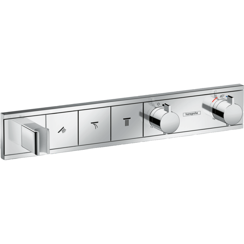 Dekoratyvinė dalis, Skirta potinkiniam termostatiniam dušo maišytuvui Hansgrohe Rainselect, 3 taškams, Maks. vandens srautas - 26 l/min., Eko funkcija, Integruotas rankinio dušo laikiklis, Apsauga nuo nusiplikymo, 5 metų garantija