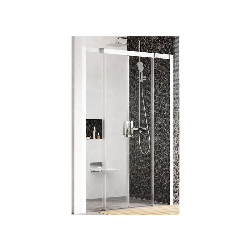 Slankiojančios dušo durys Ravak MSD4-200, keturių elementų. Dušo durys yra su chromuotais jungiamaisiais elementais ir skaidriu stiklu, todėl puikiai tiks prie įvairaus vonios interjero. Ravak suteikia galimybę rinktis iš 3 profilio spalvų - baltos, blizgios ir satino. Dušo durys Ravak MSD4-200 įrengiamos vonios kambario nišoje, išklijuotoje plytelėmis, su įrengtu nuvedimo lataku arba drenažo anga. Dušo durų stiklas padengtas specialia "AntiCalc" danga, kuri apsaugo nuo nešvarumų ir kalkių nuosėdų. Suteikiama 5 metų garantija.