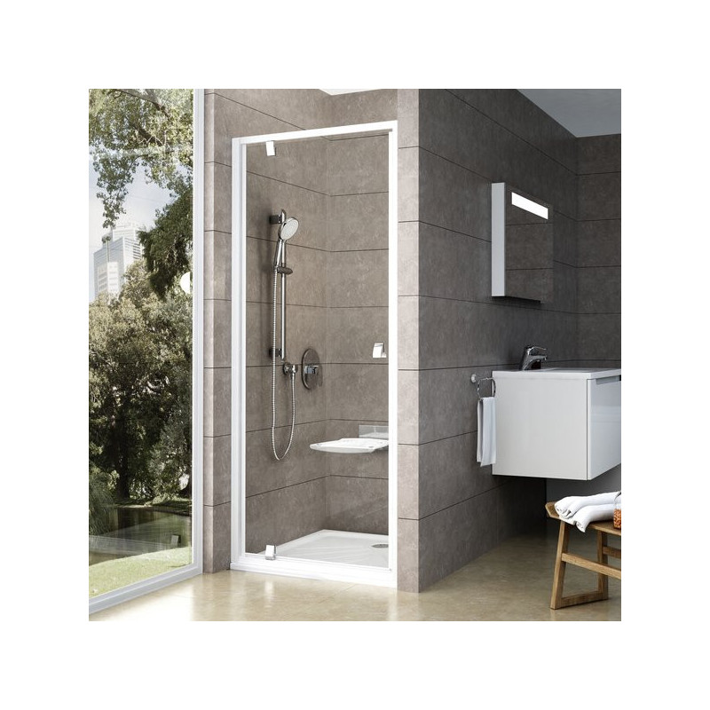 Dušo durys Ravak Pivot PDOP1-80 įrengiamos vonios kambario kampe, išklijuotame plytelėmis (idealiai tinka nišoms su apdaila arba kombinacijai su stacionaria sienele PPS) ant padėklų Ravak ANETA, ANGELA, PERSEUS, PERSEUS PRO, PERSEUS PRO FLAT, PERSEUS PRO CHROME, GIGANT PRO, GIGANT PRO FLAT, GIGANT PRO CHROME arba tiesiog ant grindų su įrengtu dušo kanalu arba trapu. Ravak Pivot serijos dušo durys sudarytos iš mažiau metalinių profilių ir daugiau skaidraus stiklo, todėl atrodo moderniai ir pabrėžia vonios plytelių grožį. Suteikiama 10 metų garantija.