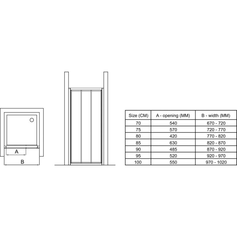 Stumdomos dušo durys, Trijų elementų, Su sidabro spalvos profiliu ir skaidriu stiklu, Matmenys 90x190cm, 4mm saugus stiklas, 2 metų garantija, IdealClean apdaila