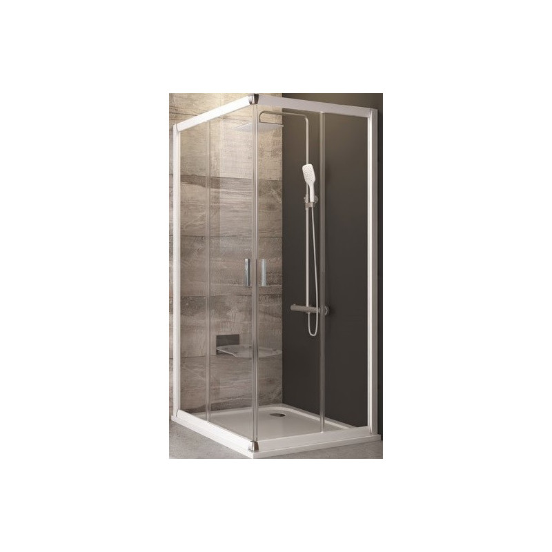 Ravak Blix BLRV2-90 keturių elementų kvadratinė dušo kabina su stumdomomis durimis susideda iš dviejų nejudančių elementų ir dviejų judančių dalių, sudarančių stumdomas duris. Dvigubos durys vonios kambaryje užima mažai vietos, o metalinės rankenos sukuria didesnį komfortą stumdant duris. Dėl mechanizmo SilentRun, kuris yra apatinėje dušo kabinos Blix dalyje, stumdoma sistema dirba tyliai ir patikimai, neleidžia užstrigti ir persikreipti judančioms dalims.