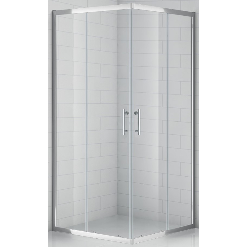 Kvadratinė dušo kabina su dvejomis slankiojančiomis durelėmis, Brillant spalvos profilis su skaidriu stiklu, Matmenys 900x1850mm