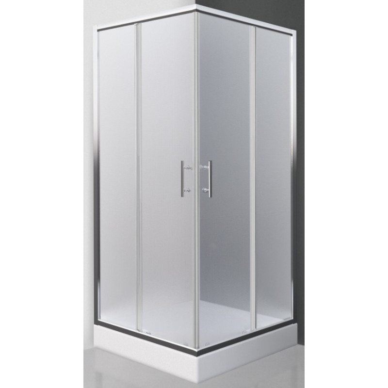 Kvadratinė dušo kabina su dvejomis slankiojančiomis durelėmis, Brillant spalvos profilis su matiniu stiklu, Matmenys 900x1900mm
