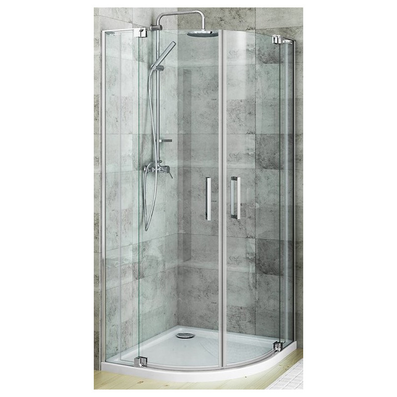 Pusapvalė dušo kabina su varstomomis durimis, Brillant profilis, Skaidrus stiklas, Tvirti metaliniai vyriai, Matmenys 900x2000 mm, Įėjimo matmenys 710 mm, 5 metų garantija