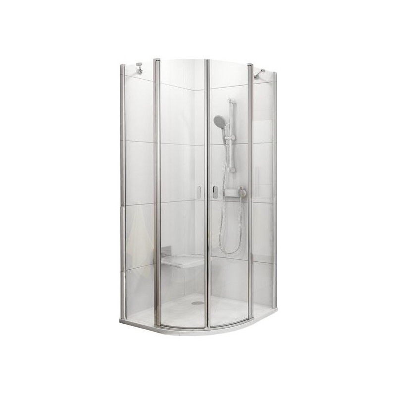 Ravak Chrome CSKK4-90 keturių elementų pusapvalė dušo kabina su varstomomis durimis susideda iš dviejų plokščių nejudančių elementų ir dviejų judančių lenktų dalių, sudarančių varstomojo tipo duris. Dvigubos durys vonios kambaryje užima mažai vietos, o metalinė rankena sukuria didesnį komfortą varstant duris. Varstomos durys Chrome turi unikalų pranašumą - atsidaro ir į vidų, ir į išorę. Taigi, vanduo suteka į dušo erdvės vidų ir grindys lieka sausos, o tai garantuoja visišką Jūsų saugumą.