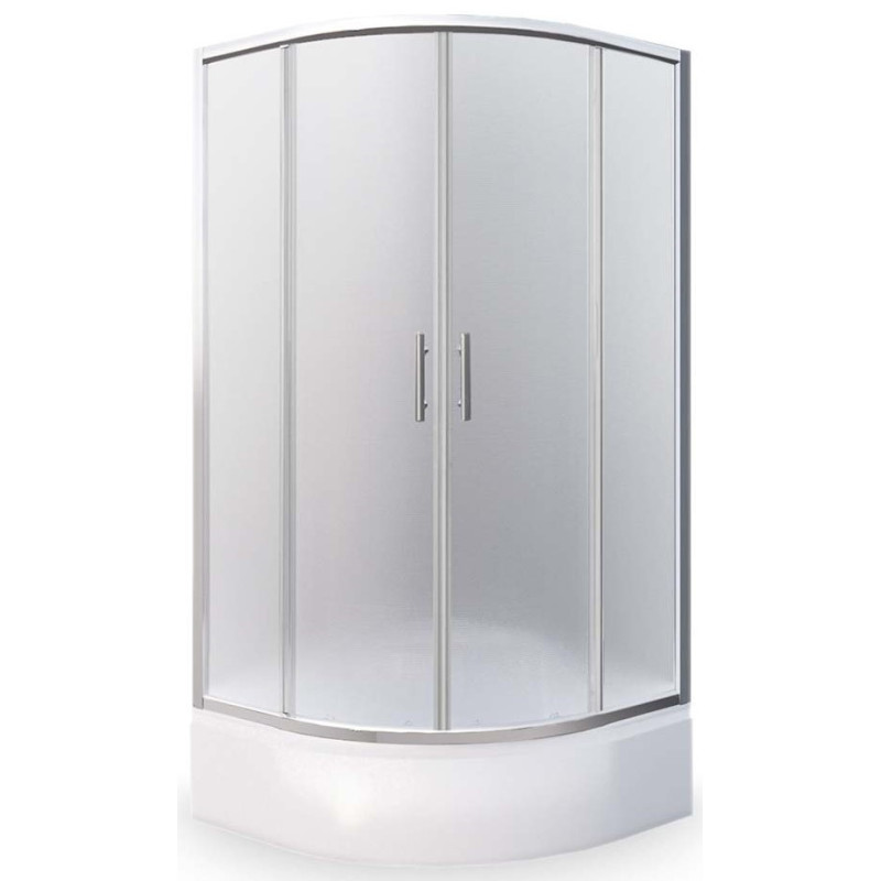 Pusapvalė dušo kabina su dvejomis slankiojančiomis durelėmis, Poliruoto nerūdijančio plieno rankenos, Brillant spalvos profilis su skaidriu stiklu, Matmenys 900x1650mm