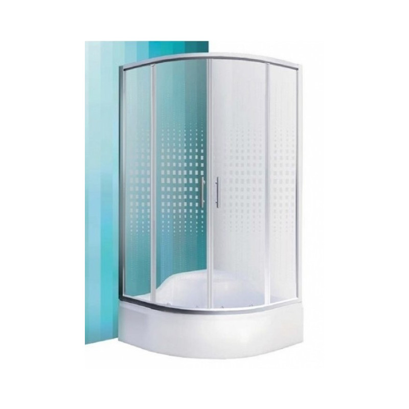 Pusapvalė dušo kabina su dvejomis slankiojančiomis durelėmis, Brillant spalvos profilis su piešiniu ant stiklo, Matmenys 800x1650mm
