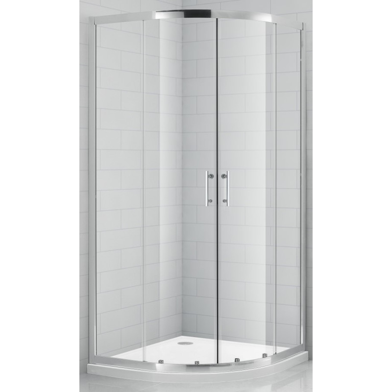 Pusapvalė dušo kabina su dvejomis slankiojančiomis durelėmis, Brillant spalvos profilis su skaidriu stiklu, Matmenys 900x1850mm