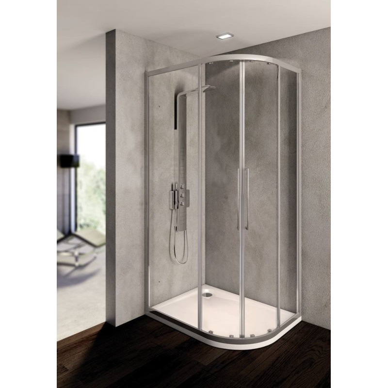 Ideal Standard Kubo R Swim 80x100 - pusapvalė dušo kabina su dvejomis slankiojančiomis durelėmis ir ilgai tarnaujančiais ratukais. Šiuolaikiško dizaino dušo kabina su sidabro spalvos profiliu ir skaidriu stiklu prisiderins prie įvairaus vonios interjero. IdealClean padengimas neleidžia kauptis kalkėms ir apnašoms, gerina vandens nutekėjimą nuo stiklo bei palengvina dušo kabinos priežiūrą bei valymą.