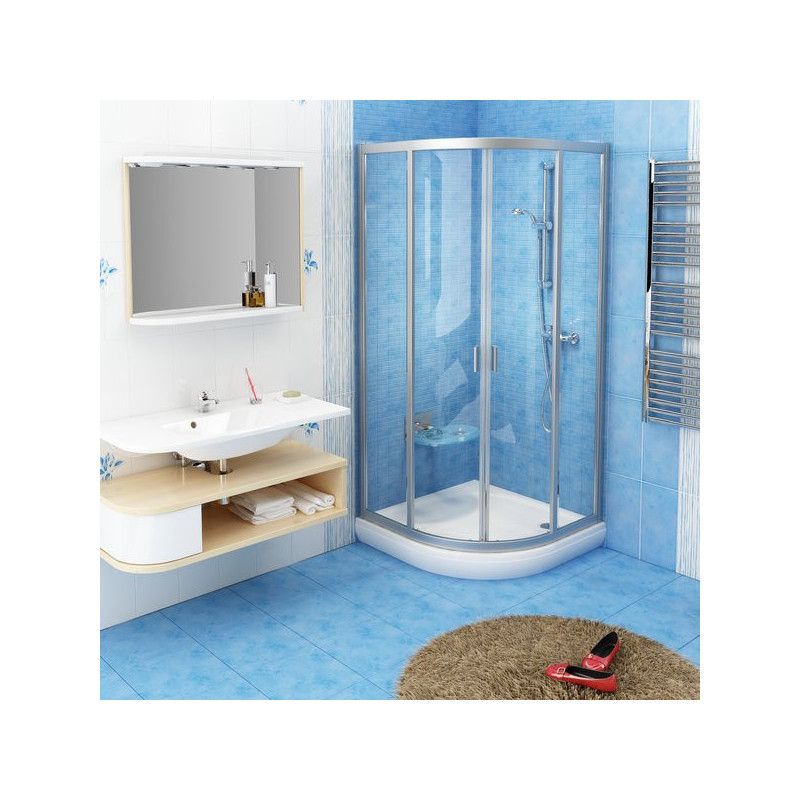 Ravak Supernova SKCP4 keturių elementų pusapvalė dušo kabina stumdomomis durimis susideda iš dviejų plokščių nejudančių elementų ir dviejų judančių lenktų dalių, sudarančių stumdomas duris. Plokšti rėmų užpildo elementai leidžia montuoti šią dušo kabiną ant dušo padėklų RONDA, ELIPSO, TOSCA, SABINA ir ELIPSO PRO, o tai užtikrina daugybę variantų išliekant patraukliai kainai. Lenkti rėmų užpildo elementai suteikia šiam gaminiui puikią išvaizdą.