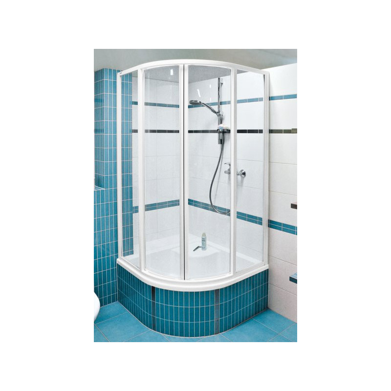 Ravak Supernova SKCP4 Sabina keturių dalių stumdomų durų žema kabina su padėklu Sabina - praktiškiausias variantas mažame vonios kambaryje, kuriame netelpa vonia. Tokia dušo kabina yra montuojama jau įrengtame vonios kambaryje ant gilaus padėklo Sabina.