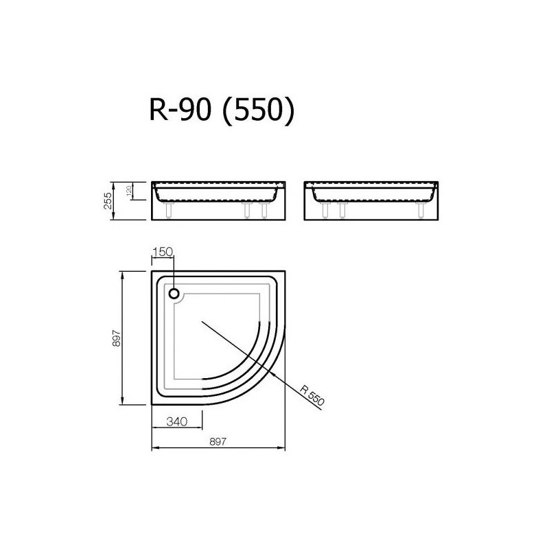 Vispool R-90 pusapvalis dušo padėklas iš akmens masės, su blizgiu paviršiumi tinka 90cm dydžio dušo kabinoms.