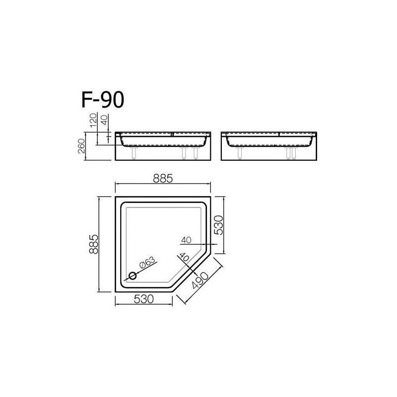 Vispool F-90 penkiakampis dušo padėklas iš akmens masės, su blizgiu paviršiumi tinka 90cm dydžio dušo kabinoms.