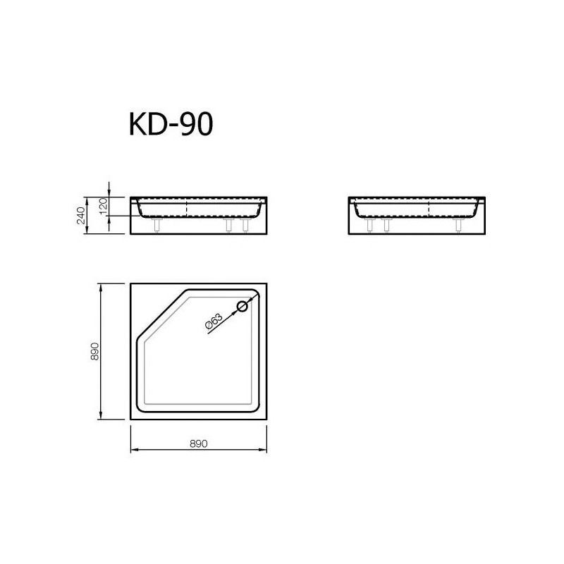 Vispool KD-90 kvadratinis dušo padėklas iš akmens masės, su blizgiu paviršiumi tinka 90cm dydžio dušo kabinoms.