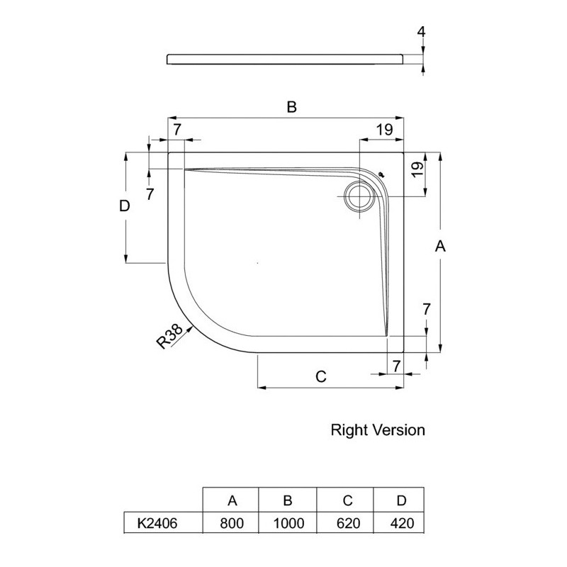Ideal Standard Ultra Flat, 100x80, dešinė versija - akrilinis, pusapvalis dušo padėklas, kuris puikiai dera su 100x80cm dydžio kabinomis. AntiSlip technologija - specialia danga padengtas paviršius, kuris mažina slydimą, todėl prausdamiesi galėsite jaustis saugiai. Komfortiškas 4cm dušo padėklo Ideal Standard Ultra Flat aukštis, leis lengvai įlipti į dušo kabiną.