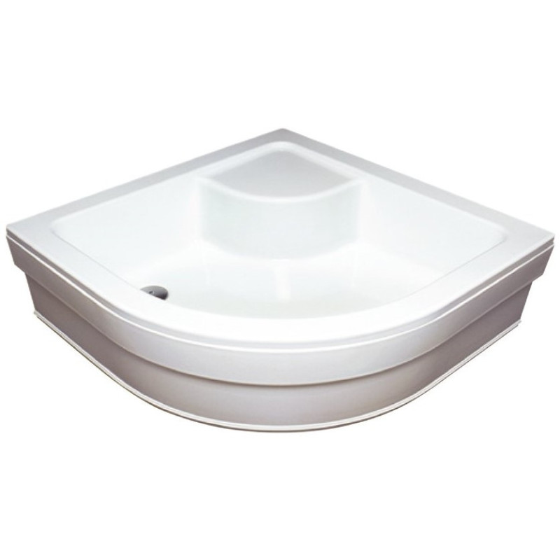 Pusapvalis akrilinis gilus dušo padėklas, Įvairių matmenų, LA tipas, Antibakterinis, Baltos spalvos, Padėklo gylis 270mm, Montavimo aukštis 420mm, Sifono skersmuo 52mm, Su sėdyne