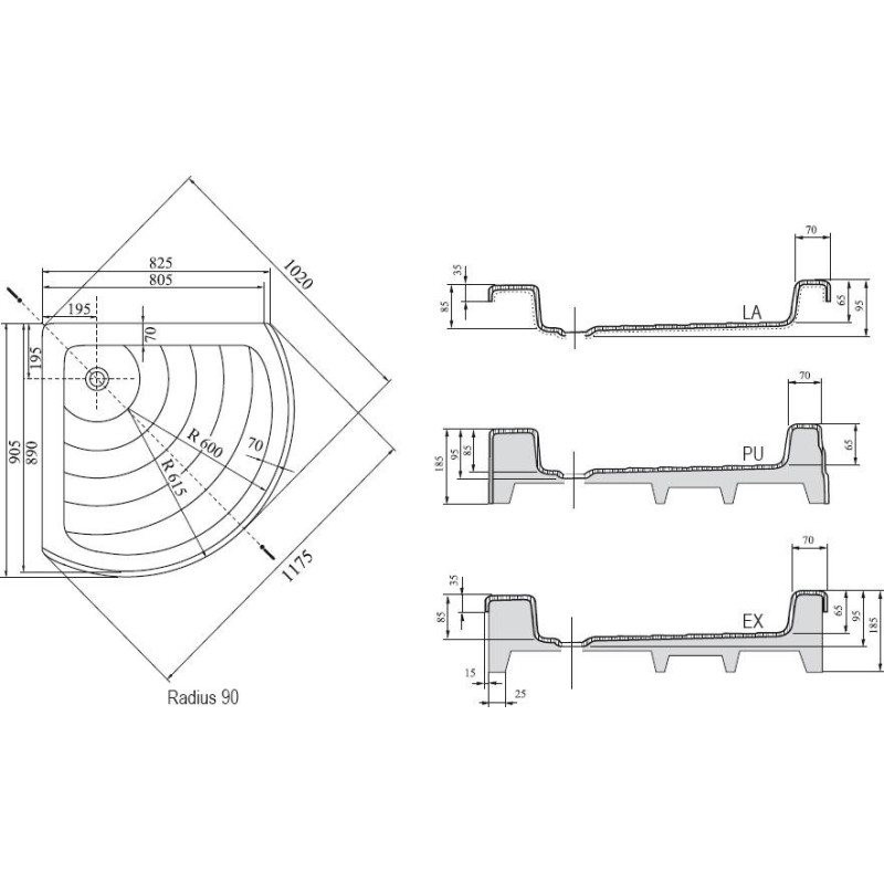 Ravak Kaskada Radius dušo padėklai - Gamintojo puslapis