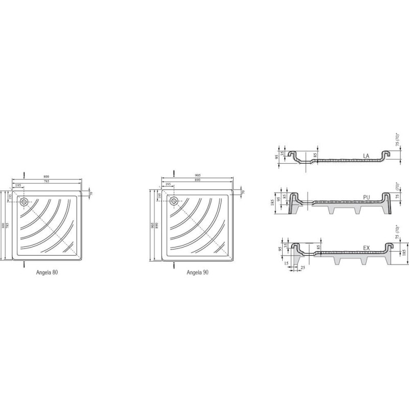 Ravak Kaskada Angela kvadratiniai dušo padėklai iš akrilo tinka 80 ir 90 cm dydžio Ravak dušo kabinoms SSRV2-S+SRV2-S, ASRV3+ASRV3 ir dušo erdvėms, kuriose įstatytos dušo durys ASDP3, SDZ3, SDOP, PDOP1, NRKRV2.