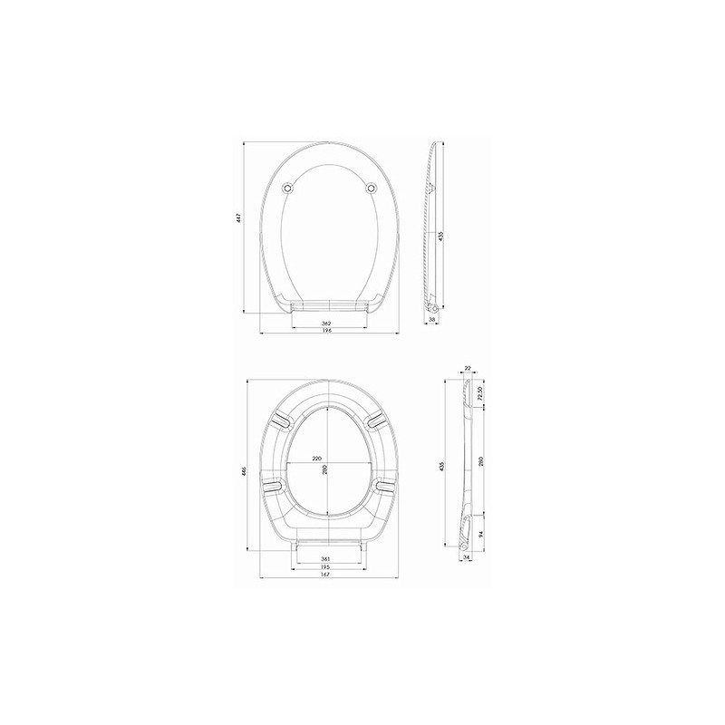 Unitazo sėdynė su dangčiu, Baltos spalvos, Su metaliniais vyriais, Pagaminta iš duroplasto, Matmenys (PxAxG) - 360x34x450 mm, 2 metų garantija