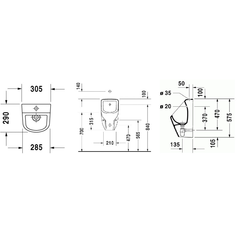 Pisuaras su išoriniu vandens įvadu, Su sifonu, Baltos spalvos, Su tvirtinimo elementais, Matmenys (PxAxG) - 305x565x290 mm, 5 metų garantija