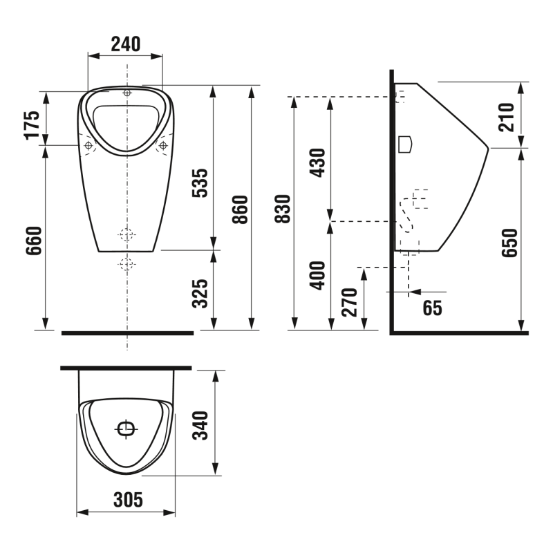 Pisuaras su vidiniu pajungimu, Baltos spalvos, Be valdymo sistemos, Su tvirtinimo elementais ir sifonu, Tinka horizontaliam/vertikaliam sifono pajungimui, Antibak technologija, Matmenys (PxAxG) - 305x535x340 mm, 10 metų garantija