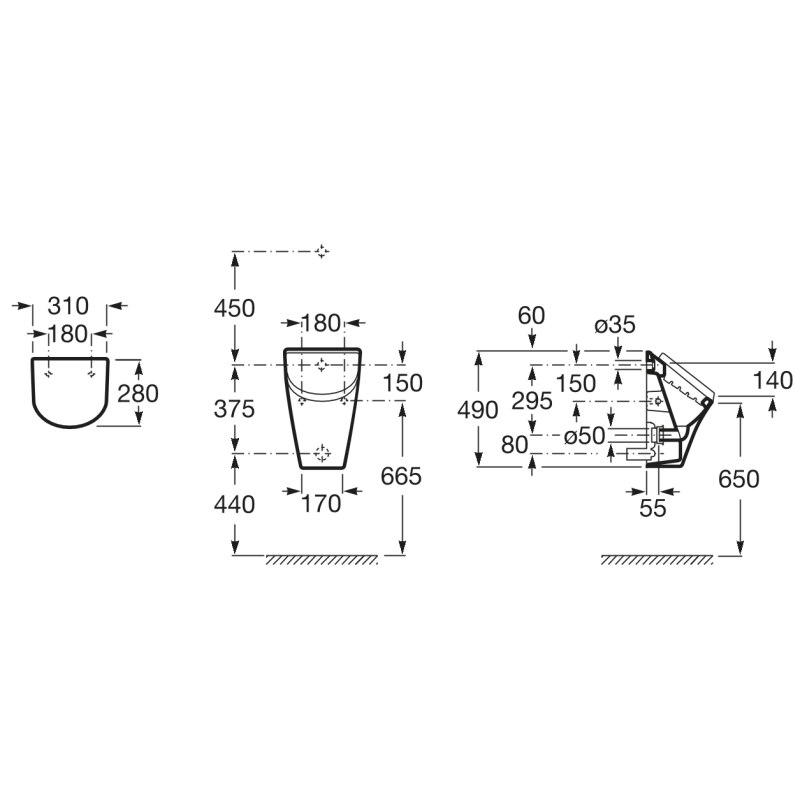Pisuaras su vidiniu pajungimu, Baltos spalvos, Su montavimo rinkiniu ir dangčiu, Rekomenduojamas viešoms erdvėms, Matmenys (PxAxG) - 310x490x280 mm, 5 metų garantija