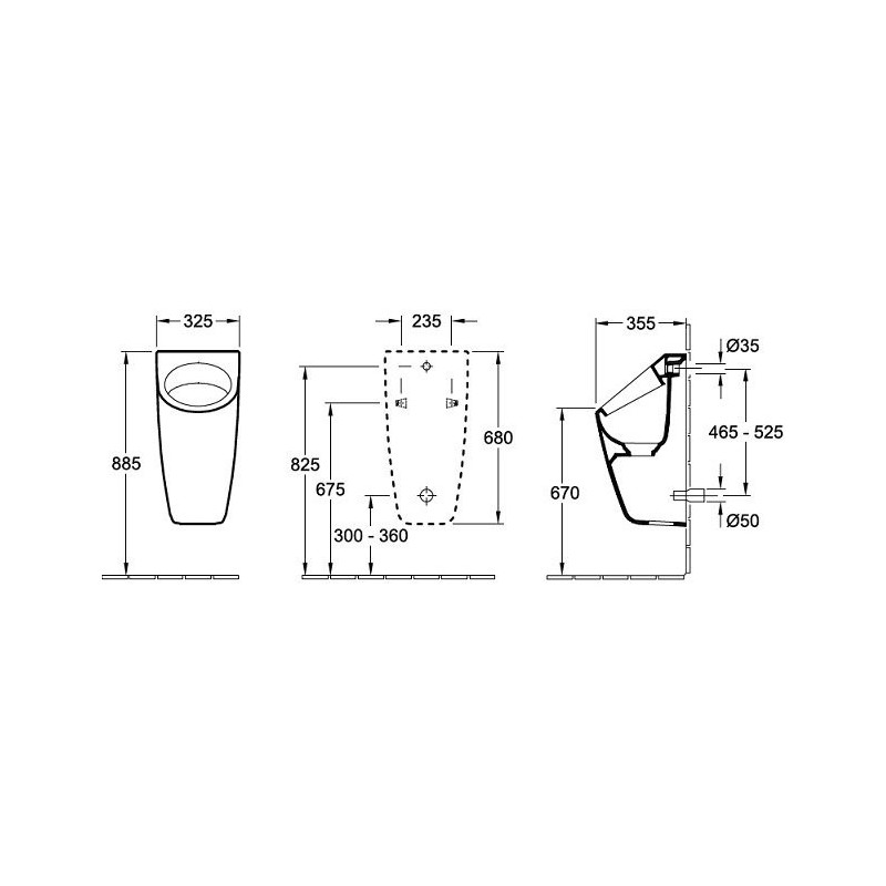 Pisuaras su paslėptu pajungimu, Baltos spalvos, Su „ViChange“ sifonu, Matmenys (PxAxG) - 325x680x355 mm, 5 metų garantija