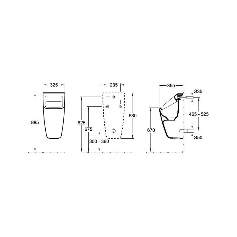 Pisuaras su paslėptu pajungimu, Baltos spalvos, Su „ViChange“ sifonu, Su CeramicPlus danga, Matmenys (PxAxG) - 325x680x355 mm, 5 metų garantija