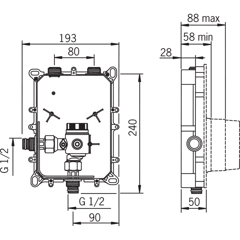 Pisuaro čiaupo korpusas, Tinka bekontakčiams sienoje montuojamiems čiaupams, Pajungimas - G 1/2", DN 15, Maks. vandens temperatūra - 70 °C, Pagrindinė medžiaga - žalvaris, Vandens srautas - 0.44 l/s (300 kPa), 2 metų garantija
