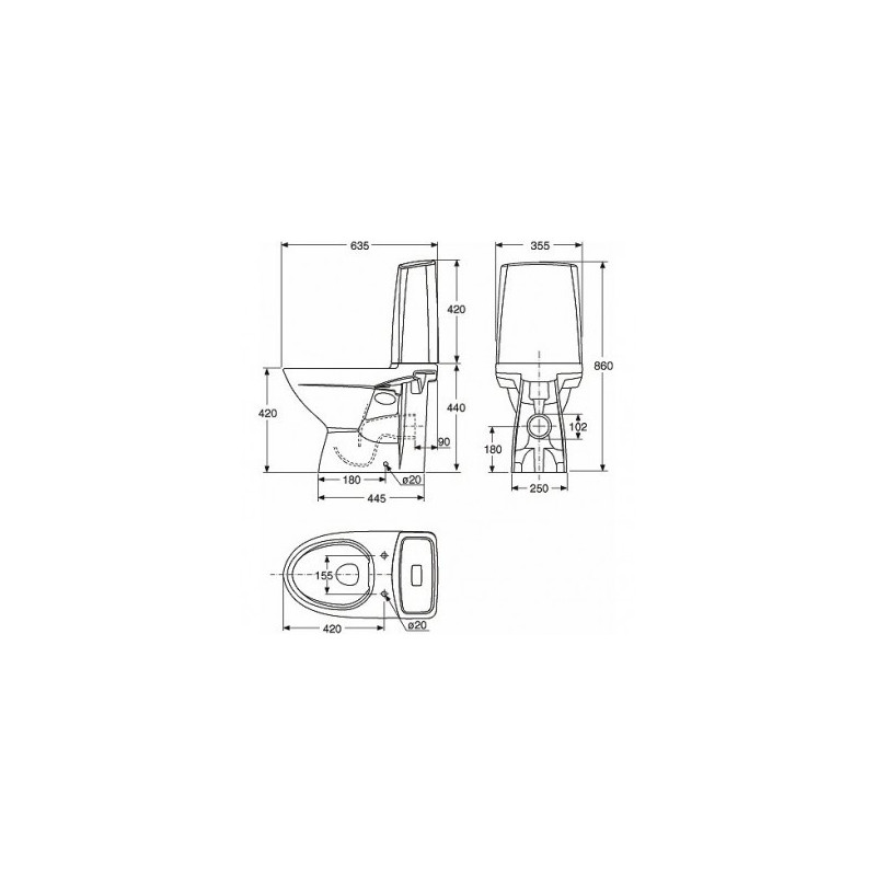 - Matmenys (PxAxG) - 355x860x635 mm