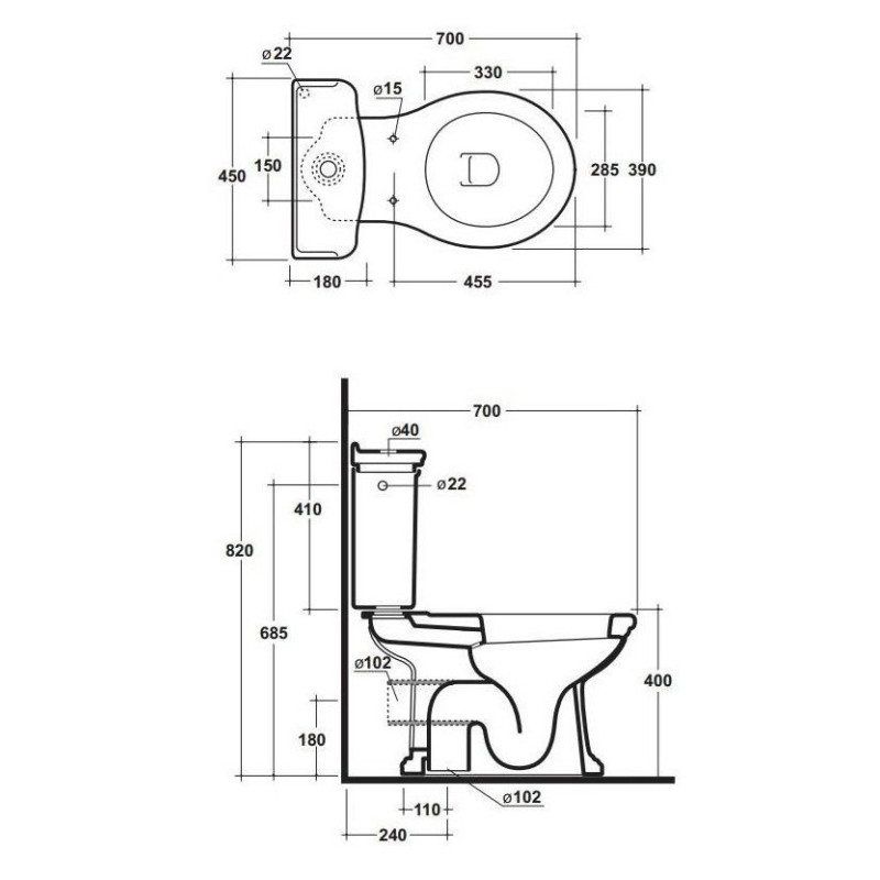 Pastatomas unitazas, Baltos spalvos, Aukštos kokybės keramika, Su tvirtinimais komplekte, Horizontalus vandens nuotakas, Matmenys (PxAxG) - 390x400x700 mm, 10 metų garantija