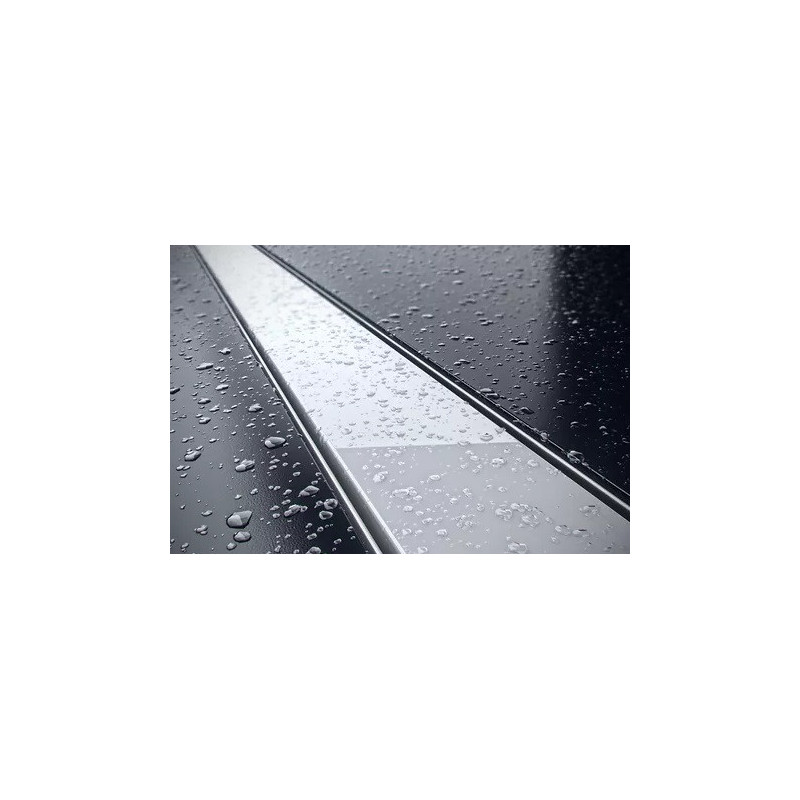 Dušo latakas, Su nerūdijančio plieno grotelėmis (balto grūdinto stiklo), Ilgis - 600 mm, Šoninis horizontalus pajungimas - DN50, Vandens pratekamumas - 56 l/min., Reguliuojamos kojelės, 25 metų garantija