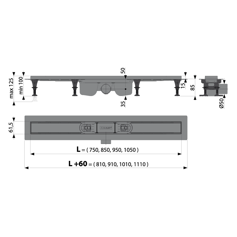 Dušo latakas Alca Plast APZ12-750, 750 mm, iš plastiko