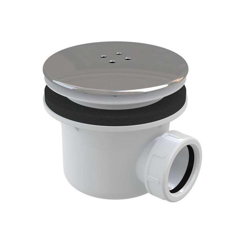 Dušo padėklo sifonas, Chromuotas plastmasinis dangtelis, Originalus dizainas, Vandens pralaidumas - 32 l/min., Skersmuo - 9 cm, 3 metų garantija