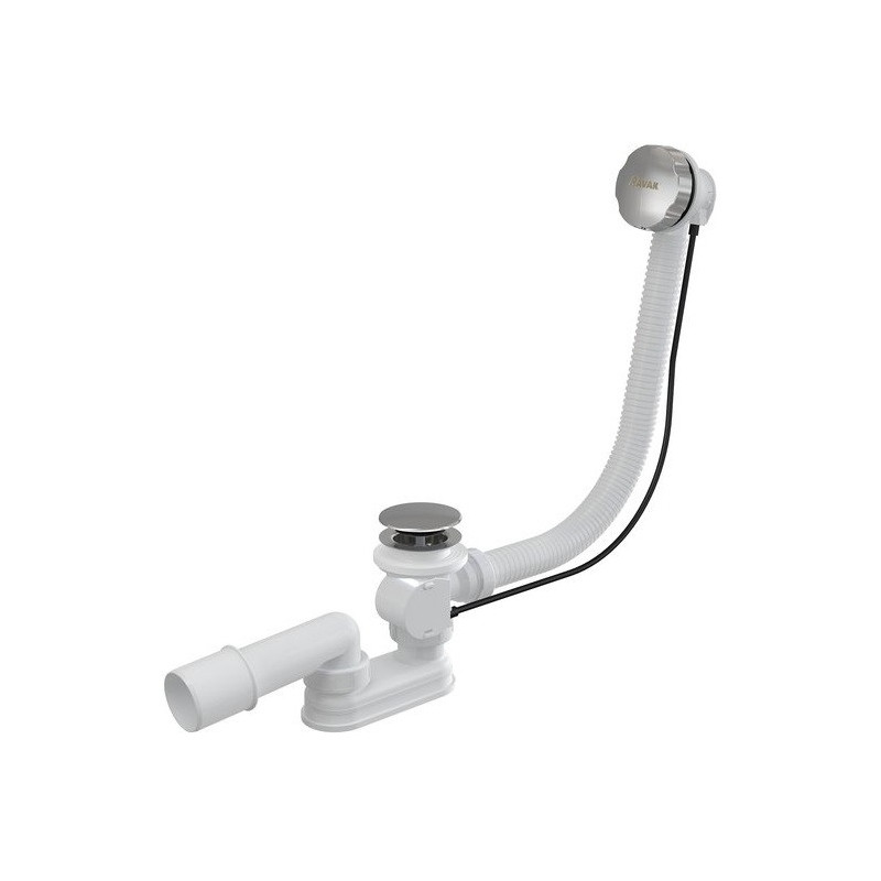 Vonios sifonas Rava 800, su chromuotu metaliniu dangteliu, su persipylimu. Sifonas tinkamas montavimui su visų tipų Ravak voniomis. Suteikiama 3 metų garantija.