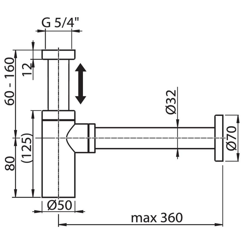 Baldinis praustuvo sifonas, Juodos spavos, Pajungimas - G 5/4", Iš žalvario, Tinka visiems Ravak praustuvams (išskyrus Ravak BeHappy II), 3 metų garantija